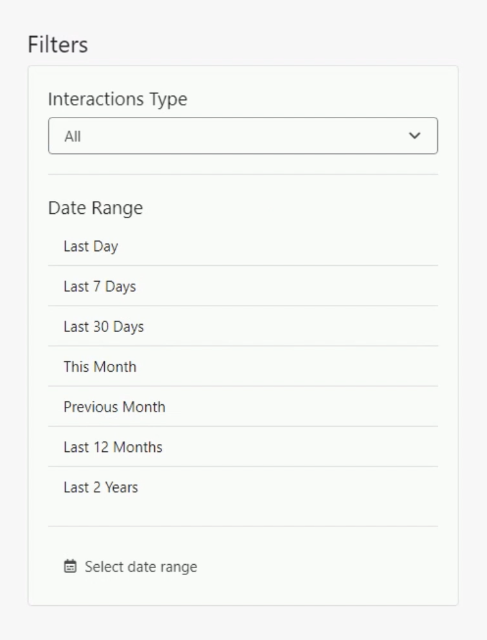 Click the Interactions Type dropdown to view the different filters available.